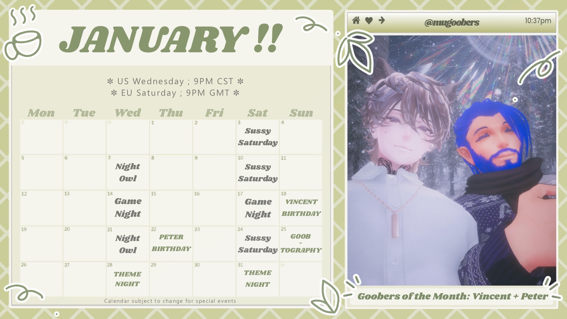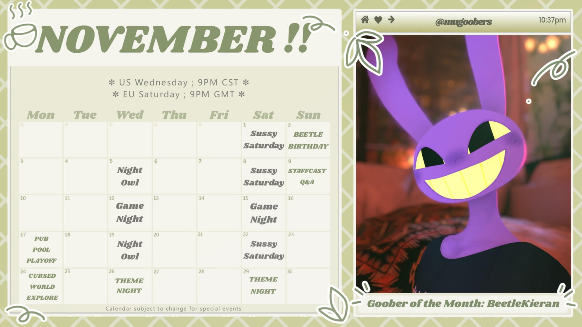 For Events and in the Discord Server✽ Mugoober's is 18+ only.
